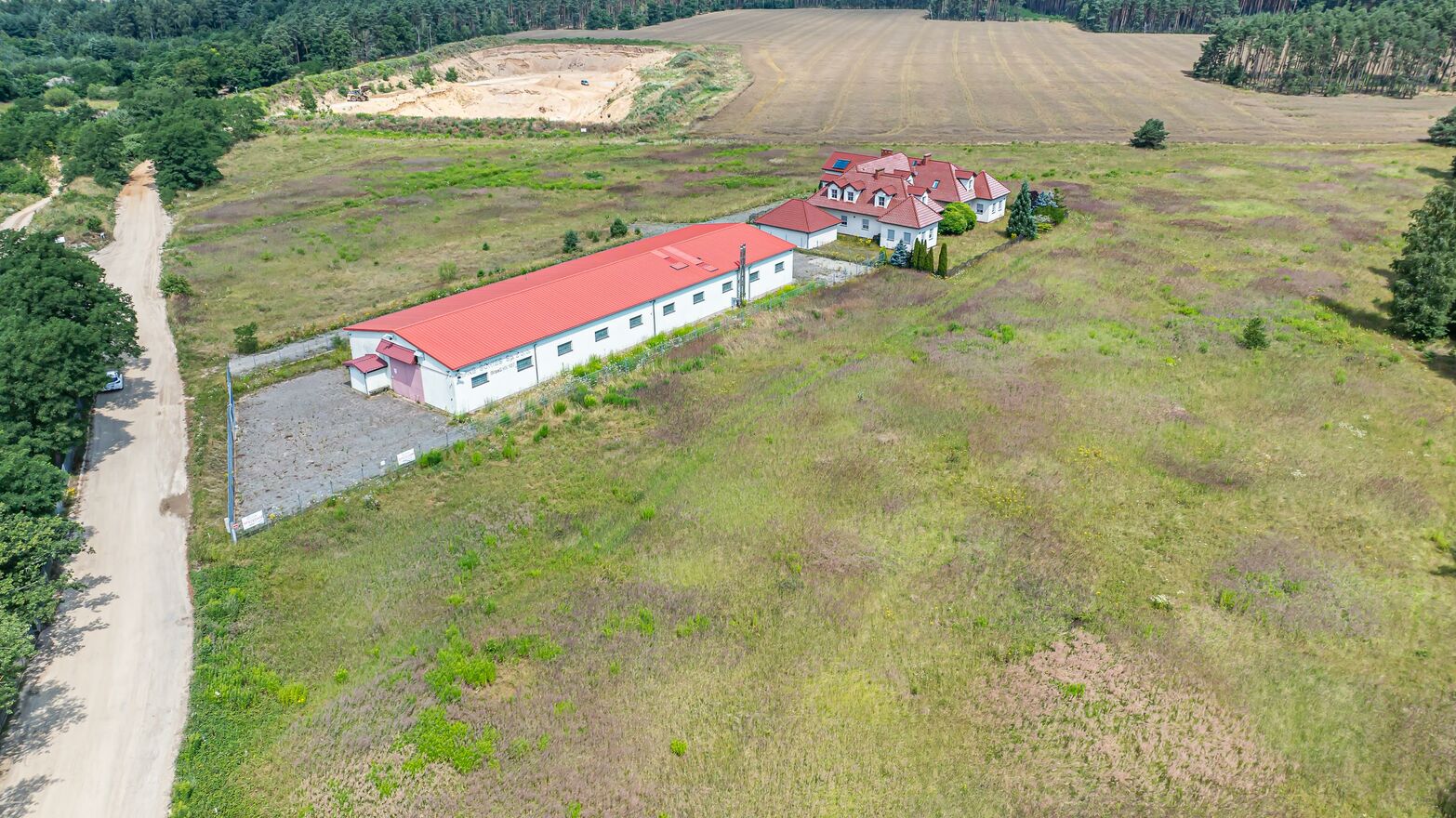 Hala jest w pełni przystosowana do działalności produkcyjnej i usługowej. Budynek ocieplony, kryty blachodachówką, z izolacją termiczną na wiązarach kratownicowych. Zaplecze biurowe i socjalne pomieszczenia biurowe, szatnia, sanitariaty, pomieszczenia socjalne dla pracowników. Dwa wjazdy szerokie, otwierane bramy umożliwiające łatwą logistykę. Ogrzewanie system nadmuchowy z piecem na olej opałowy w wydzielonej kotłowni. Bezpieczeństwo monitoring i system alarmowy. Teren wokół hali utwardzony kostką brukową, ogrodzony, z bramą przesuwną i budynkiem ochrony.